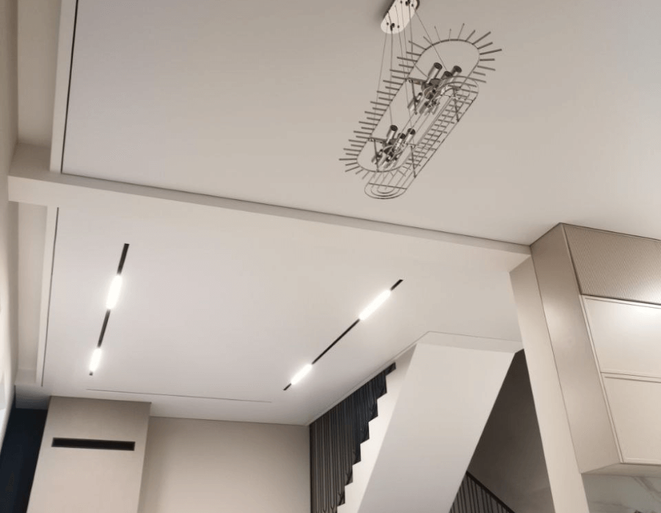 Необычные натяжные потолки со световыми линиями, переходящими на стену! Красиво, оригинально и современно. Рассказываем, показываем, объясняем.